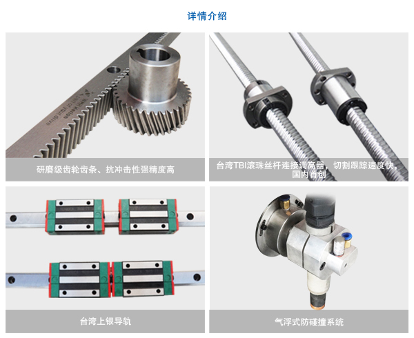 ◆三軸運動采用進口高精度導(dǎo)軌、斜齒齒條,伺服電機及減速機,使X軸鋁型材自行設(shè)計開發(fā)模具,保證設(shè)備運行過程中的穩(wěn)定性。